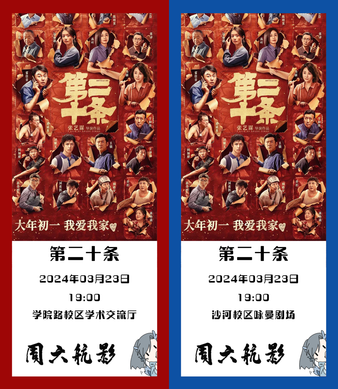 3月23日(周六)19:00,,,,学院路校区学术交流厅、沙河校区咏曼剧场同步放映!