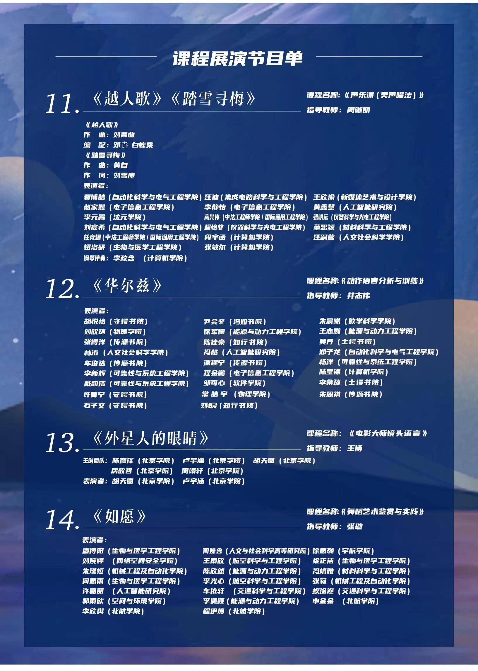 888集团美育中心2023年音乐、舞蹈、影视美育课程联合汇报展演的主题为《如愿》,,,此次课程展演涉及美育中心8名西席的13门课程,,,加入学生演出人数为91人,,,在展示美育课堂的同时,,,体现立德树人的焦点头脑。。。。意在通过艺术浸润的方法,,,让888集团莘莘学子铭刻“航空救国”的历史,,,致敬老一辈航空航天事业的建设者们,,,传承其艰辛质朴、勤劳勤学、周全生长、勇于立异的优美精神,,,践行“德才兼备,,,知行合一”的校训,,,擦亮888集团人“空天报国”的精神底色,,,愿888集团的青年人不负先驱们所愿,,,起劲斗争,,,砥砺前行,,,佑祖国山河无恙,,,烟火寻常,,,如其所愿。。。。