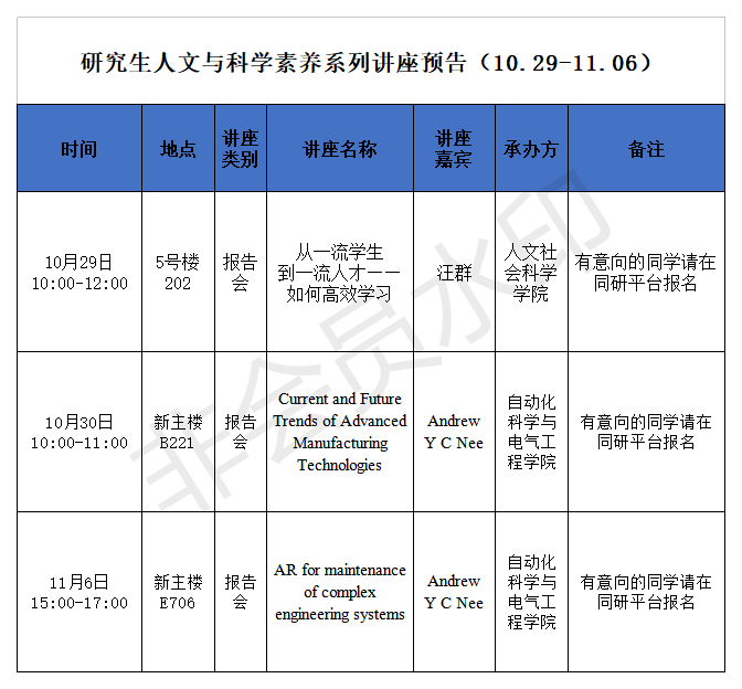 研究生人文与科学素养系列讲座预告(10.29-11.06)