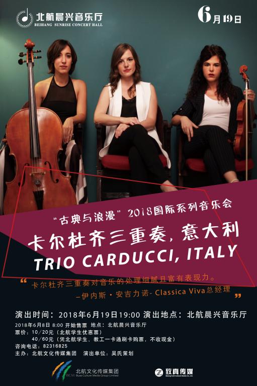 卡尔杜齐三重奏2016年建设于米兰,,,,,由三位意大利演奏家组成,,,,,成员包括:小提琴家杰尔马纳?珀库、大提琴家玛蒂尔达?科力亚尔和钢琴家莎拉?科斯塔。。。。。。。