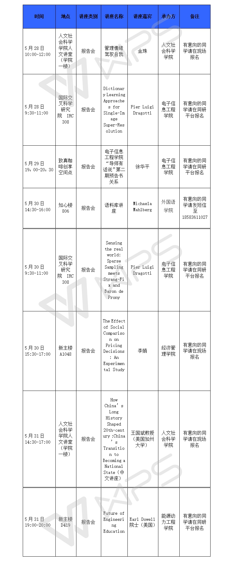 研究生人文与科学素养系列讲座预告(5.28-6.3)
