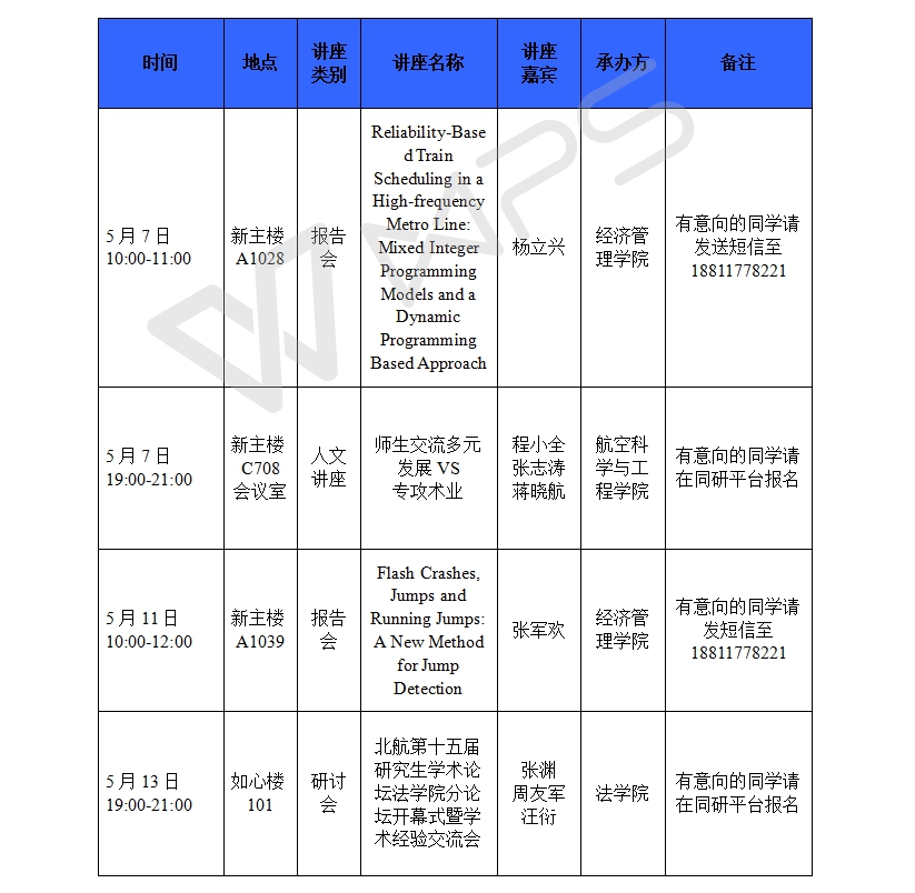 研究生人文与科学素养系列讲座预告(5.7-5.13)