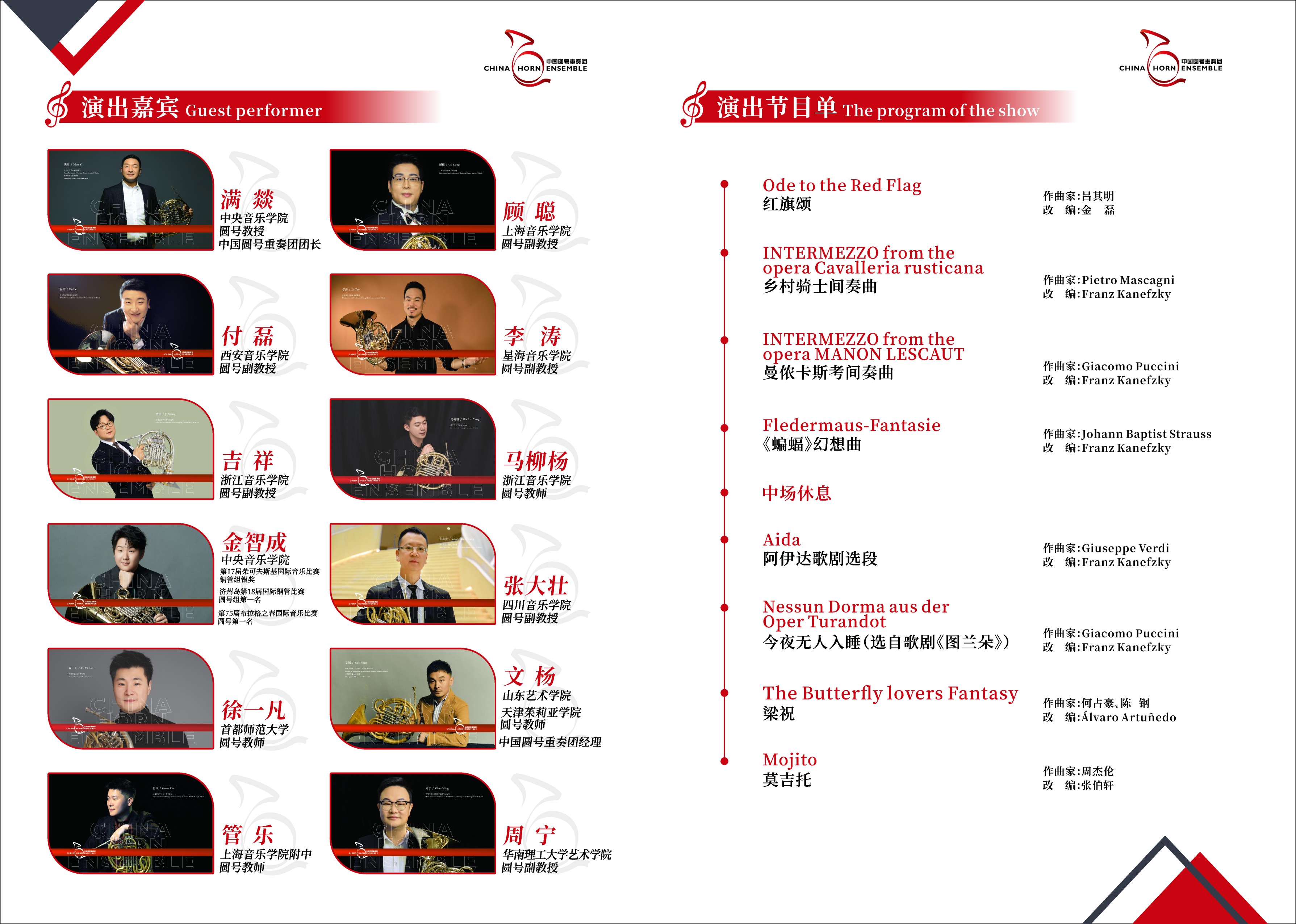 近年来,,,,中国圆号事业生长迅速,,,,华人圆号演奏家在海内外的舞台上越来越受瞩目。。。2015年,,,,中国圆号重奏团(China Horn Ensemble)应运而生,,,,由中央音乐学院圆号西席满燚提倡,,,, 并迅速引起海内外优异华人圆号演奏家的共识。。。2015年秋天的北京,,,,全球优异的华人圆号演奏家怀抱着配合的理想,,,,组成了这支活力四射的圆号重奏团。。。重奏团的成员除了海内一线音乐学府的圆号教授和先生,,,,也席卷了享誉国际、任职外洋一流乐团的首席圆号演奏家。。。这样的阵容不但武艺精湛,,,,充满生气,,,,也展现了中国圆号实力的凝聚力。。。自建设以来,,,,已成为中国着名的室内乐整体之一。。。细腻的艺术质感,,,,温暖华美的音色和充满新意的曲目编排,,,,以致每一位圆号艺术家的奇异个性,,,,都是中国圆号重奏团的标记。。。每一位音乐家都怀抱着对圆号的热爱与赤忱,,,,在演出中倾 尽所有,,,,他们的现场熏染力和富厚的音乐内容,,,,早已跨越了国家、跨越了语言,,,,用音乐将这个天下牢牢相连。。。 音乐家们全力以赴挥洒魅力,,,,乐迷朋侪们津津乐道口口相传,,,,灵魂的双向奔赴在一次次的演 出中一直打磨与升华,,,,音符成为相互最深沉的情绪链接。。。