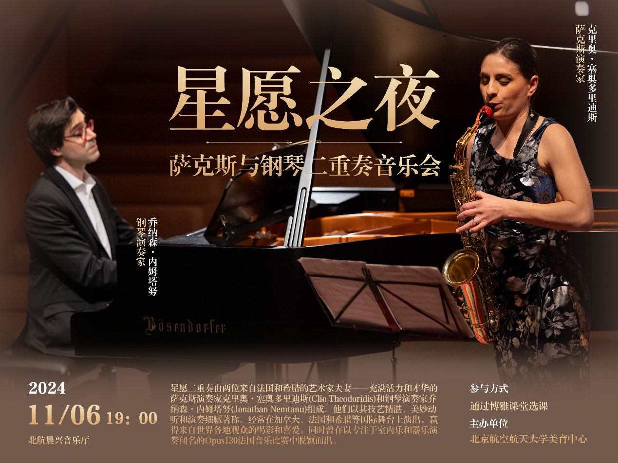 星愿二重奏由两位来自法国和希腊的艺术家伉俪——充满活力和才华的萨克斯演奏家克里奥·塞奥多里迪斯(Clio Theodoridis)和钢琴演奏家乔纳森·内姆塔努(Jonathan Nemtanu)组成。。。。。。。