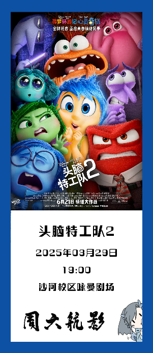 「周六航影」第五周,,,,,让我们一起走进《头脑特工队2》。。。。。。在高饱和度的色彩表达和重大情绪的具象体现中,,,,,在社交压力学业焦虑中,,,,,走进这篇寻找真实自我的惊险寓言。。。。。。