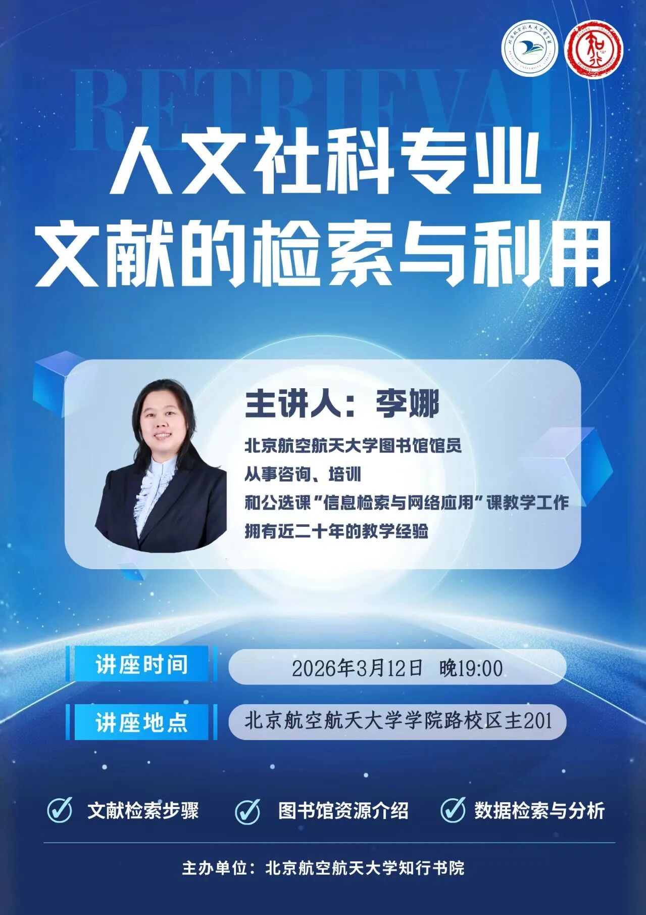 本次讲座聚焦文献检索的适用手艺,,,,,,主要解说从剖析需求到获取全文的完整检索办法,,,,,,资助各人理清检索思绪。。。。。。。同时,,,,,,将系统先容图书馆的种种资源与效劳,,,,,,重点以中国知网等中文数据库为例,,,,,,现场演示详细的检索要领与数据剖析功效,,,,,,助力各人高效使用学术资源。。。。。。。
