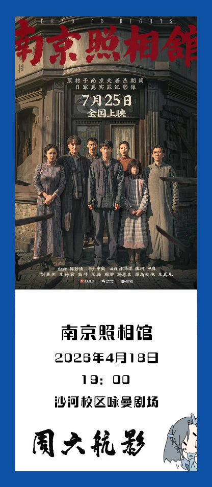 「周六航影」第七周,,,,让我们一起走进《南京照相馆》,,,,追随平民黎民的挣扎与坚守,,,,从胶片显影的瞬间,,,,直面历史伤痕;;;从生死决议的时刻,,,,读懂民族风骨。。。。。。