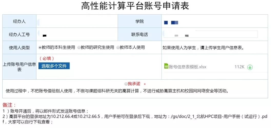 (1)填写申请表时注重“使用人类型”一栏分为西席、本科生和研究生。。。。。。