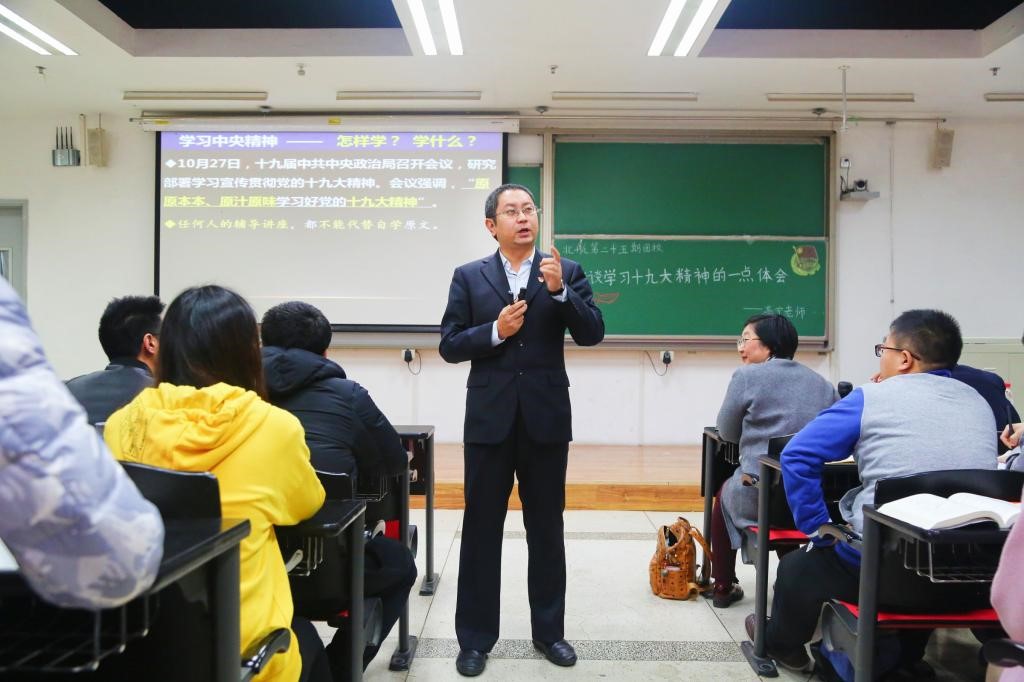 高宁先生不但是一位优异的思政课西席,,,,照旧一名优异的共产党党员。。。。。。除了本职的思政课外,,,,他将教学党课看作自己应尽的义务与责任,,,,并起劲解答大学生党员的头脑疑心,,,,助力他们生长成才。。。。。。为了贯彻学校学生党校团校的“小班化”教学目的,,,,除了每年320个学时的教学使命之外,,,,他还每月去校团校党校授课2-3次,,,,学校近乎所有的入党起劲分子和学生党员都听过高宁先生的党课,,,,他每请必到,,,,特殊是党的十九大以来,,,,他每年在校内宣讲凌驾70次。。。。。。在士谔书院,,,,高宁先生担当了书院思政总导师,,,,与彭付芝教授一起,,,,为士谔书院士信党建事情坊《大国首脑》课程支付了许多的心血。。。。。。经由两年四轮党建事情坊《大国首脑》课程的授课,,,,许多士谔书院的学子在高宁等先生们的指导下,,,,刻意加入中国共产党,,,,树立了为共产主义斗争终身的理想信心。。。。。。