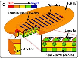仿生模具(除上面的小刺之外)由多质料3D打印一次成形。。。。。设计之初由于仅用软硬两种质料来制作模具,,,,,,,导致样机吸附性欠好且易开裂。。。。。一直实验改良后,,,,,,,团队意识到人类的肌肉和骨骼之间是由半月板、韧带等组织逐渐过渡的,,,,,,,因此使用梯度硬度质料举行3D打印来解决材质的模拟问题。。。。。吸盘上的小刺标准小且尖硬,,,,,,,3D打印手艺无法知足要求的精度和硬度,,,,,,,于是文力先生课题组与美国哈佛大学的国际团队相助,,,,,,,使用激光镌刻手艺制造了标准、形状都和真实鱼高度相似的硬质小刺并在测试中效果较好。。。。。